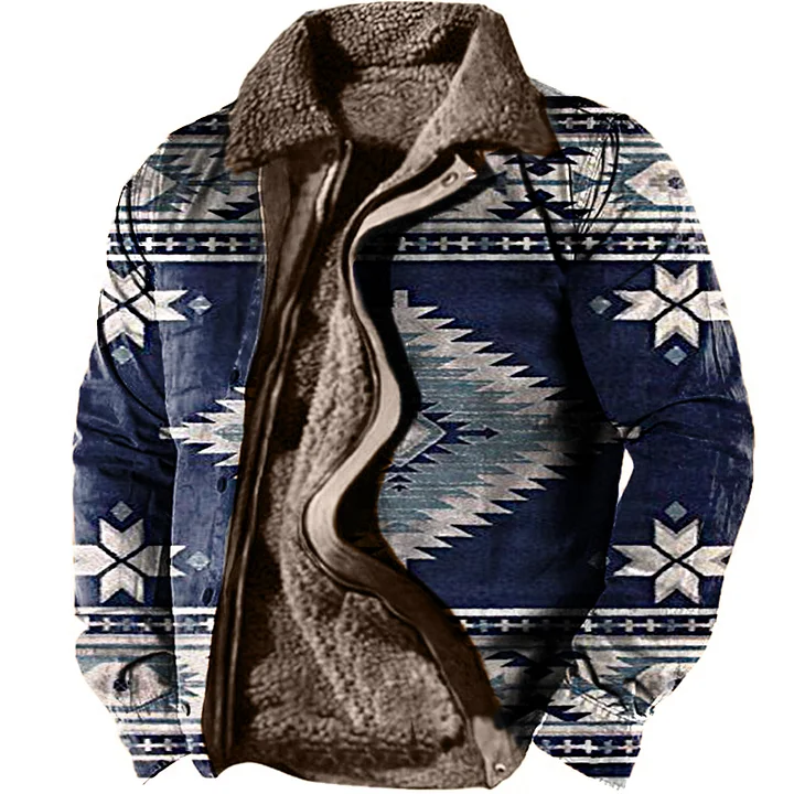 Men's Retro Ethnic Pattern Long Sleeve Fleece Jacket